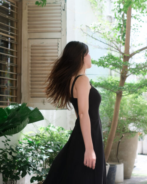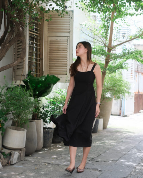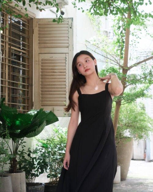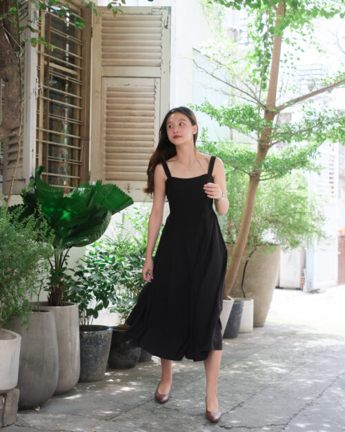 Đầm may rã nhiều mảnh tạo độ xoè tự nhiên, phần lưng phía sau có đi thun giúp đầm ôm gọn vào người khiến chúng mình thiệt là thon thả.