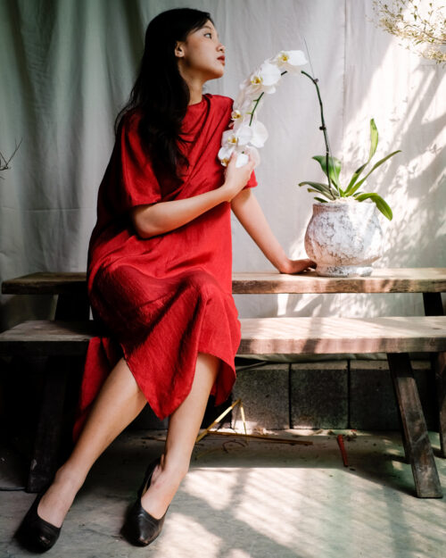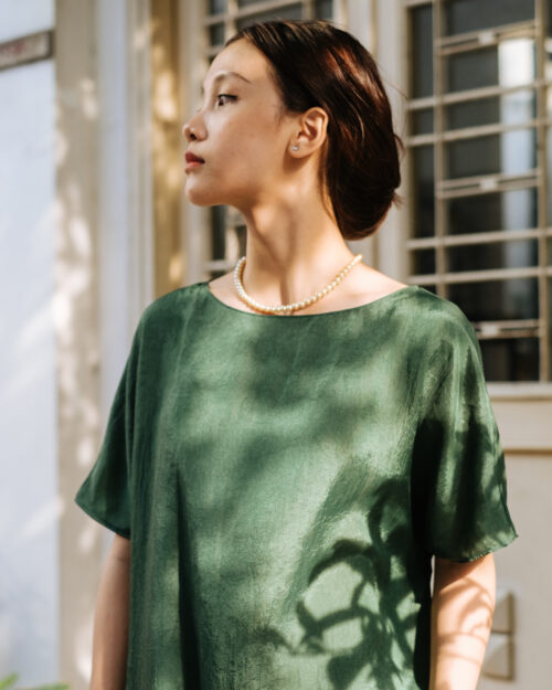 Chiếc đầm nữ tính với đường cắt tối giản trên nền vải taffeta với texture dập nhăn. Bạn sẽ cảm thấy thật nhẹ nhàng thả mình trong chiếc đầm của sự tự do.
