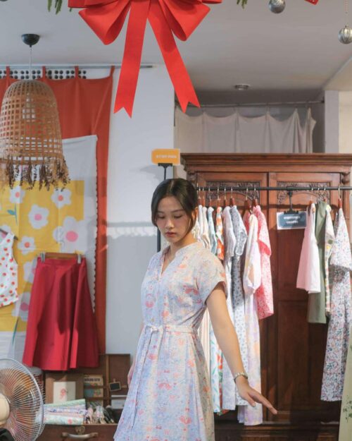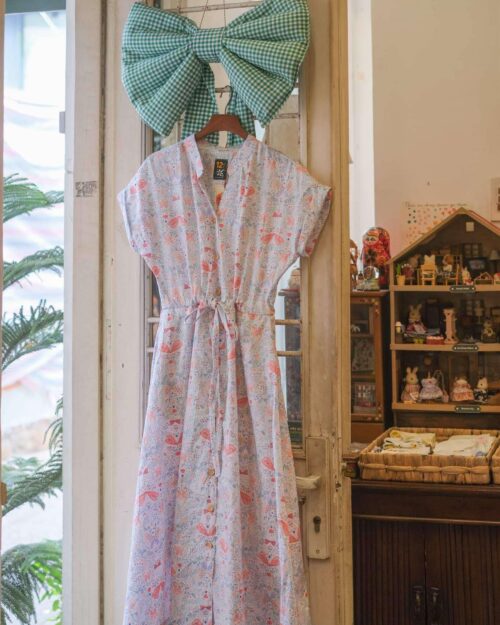 LITI DRESS | Chút nhẹ nhàng cho ngày đầu xuân. Những bông hoa đỏ liti rơi trên nền vải trắng, đầm rút eo nên mặc rất thoải mái. Bạn có thể siết chặt hoặc buông lõng tuỳ ý thích.