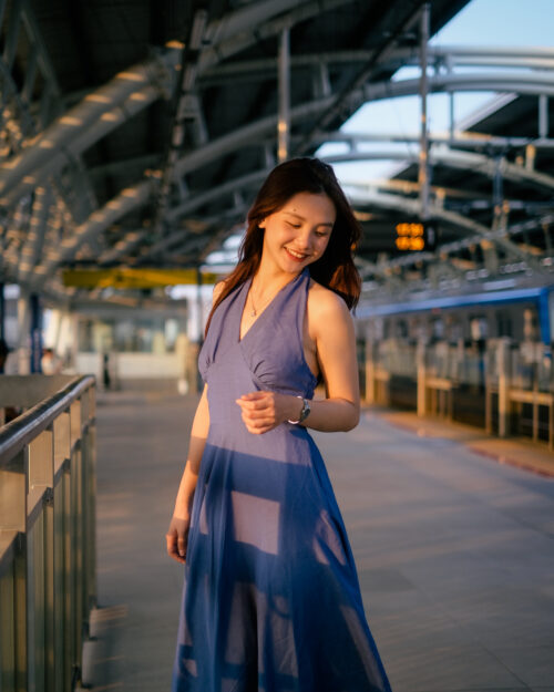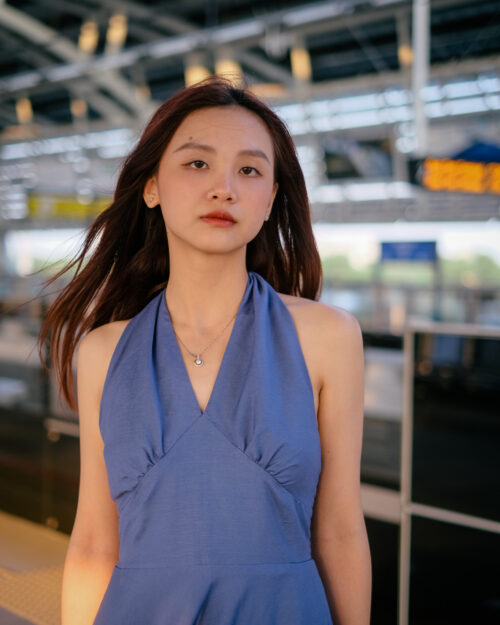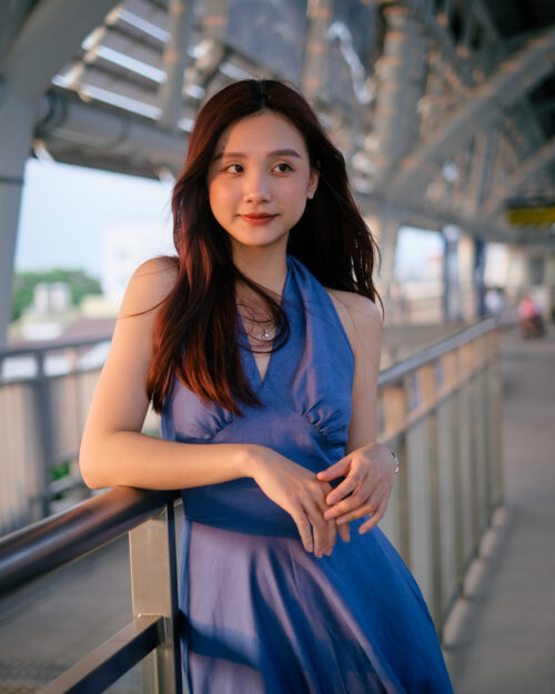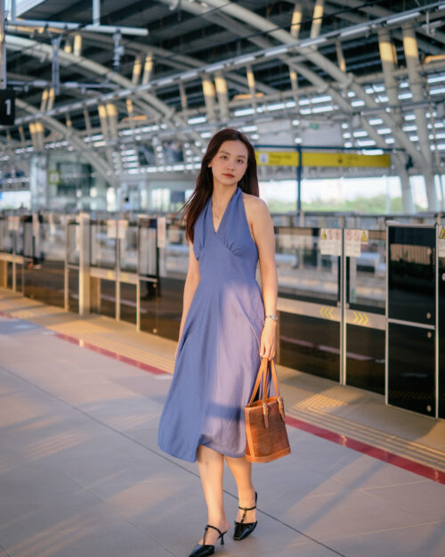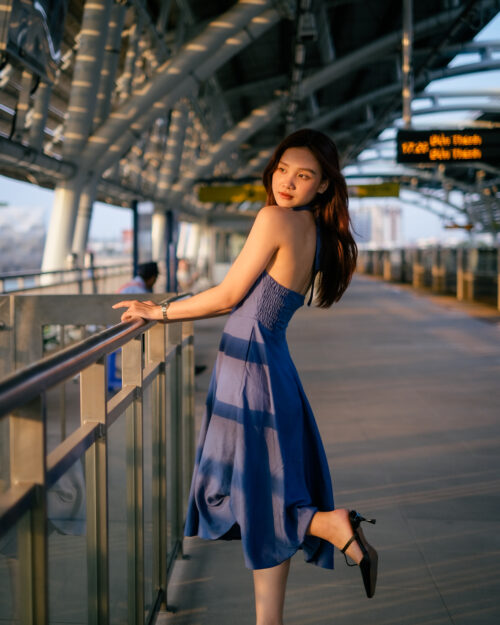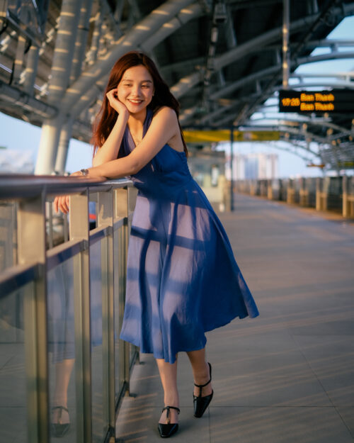 Phần cúp ngực được may ôm sát tinh tế. Phần eo được đẩy lên cao tạo cảm giác rất là thon gọn. Sau lưng Tẻn chạy thun để form đầm ôm vừa vặn nhứt. Tùng váy được cắt xéo – xoè tự nhiên tha hồ mà tung bay. Chiếc đầm này diện khi hội hè là tuyệt nhất!