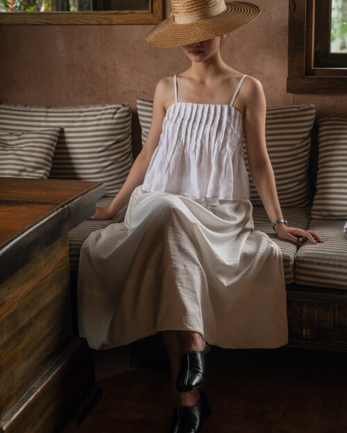 Pleated Top – White Linen