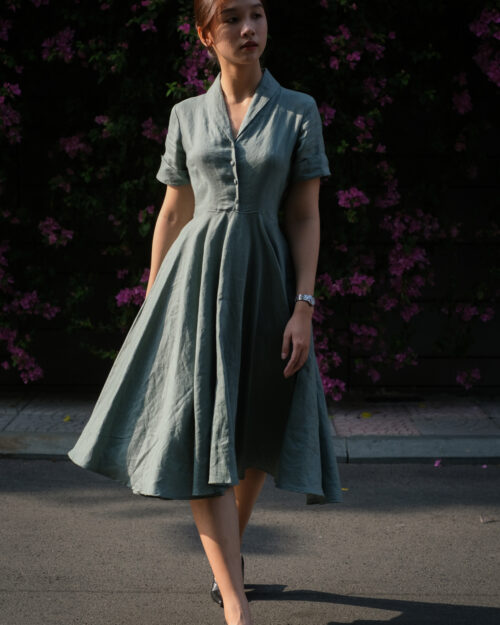 Chiếc đầm xoè được bạn rất quan tâm tuần qua. Sway được sinh ra cho những điệu nhảy xoay vòng. Đầm được may với phần cổ Sam duyên dáng, tay áo lật nhẹ tạo điểm nhấn. Và đặc biệt phần tùng váy cắt xoè 360° rất rất nhiều vải đúng chuẩn mực của những chiếc đầm cổ điển thường thấy trong phim ảnh thập niên 50s-60s.💃🏻